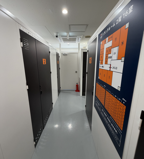 全部屋が鍵付きの個室タイプで、0.6帖から4.5帖まで豊富なサイズを取り揃えています。